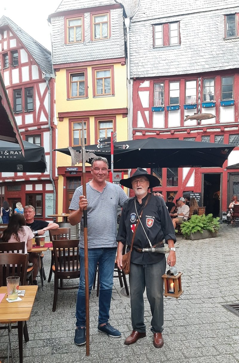 Das hat prächtig funktioniert. Mit flottem Schritt leitet er jeden Monat einige hundert Gäste durch Limburgs enge Gassen. Und lässt sie gern mal sein Alter schätzen. Schon über 80, das glaubt ihm keiner. Und natürlich grinst er dann fröhlich. Genau wie die Besucher, wenn er zwischen all dem Fachwerk seine Anekdoten erzählt.
