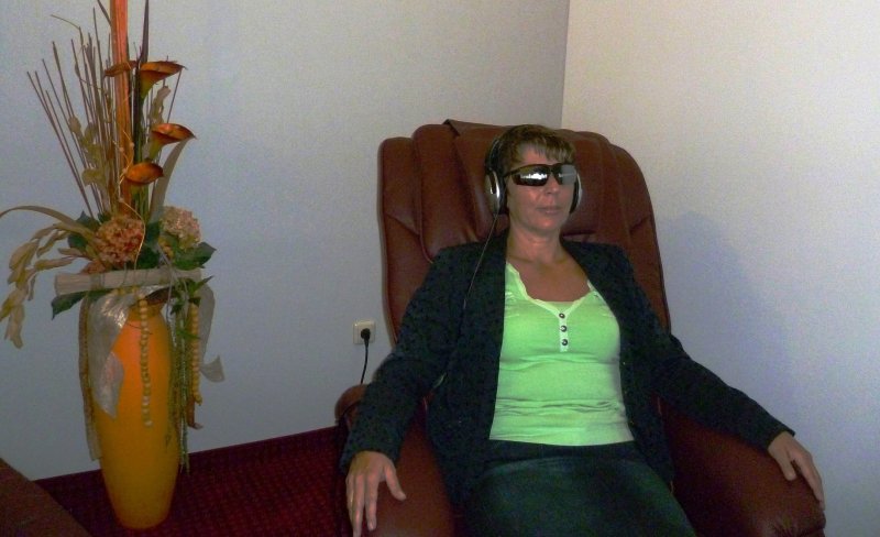 Erst mochte ich es nicht wirklich glauben, dass so ein Sessel eine derartige Wirkung haben kann. Das nette Team im Kurhotel empfahl dann, ich solle es selber testen. Gesagt, getan. Zugegeben, es sieht vielleicht nicht prickelnd aus, sich mit Brille und Kopfhörer in der BrainLight-Lounge ablichten zu lassen, aber ich verspreche, dass die Wirkung dieses Massage-Sessels enorm ist. Ich hatte das Einstiegs-Programm. Eine warmherzige Stimme erzählt über den Kopfhörer, was zu tun ist. Der Sessel fängt an zu kneten, erwischt genau die verspannten Stellen, der Körper entspannt. Die Lichter in der Brille und die angenehme Musik verleihen Flügel für die Reise ins Traumland. Nach einer knappen halben Stunde war ich in der Tat tiefenentspannt. Versuchen Sie es doch auch mal!