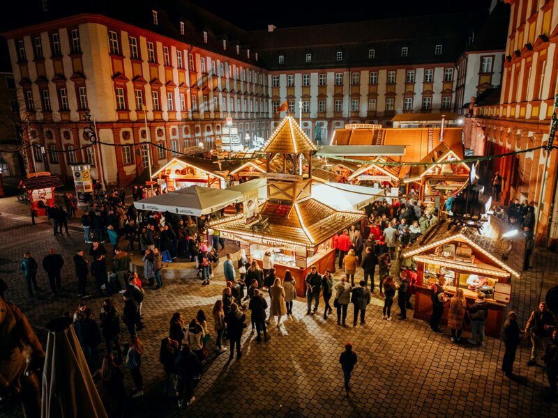 Bayreuth ist nicht nur Wagnerstadt, sondern auch zur Adventszeit ein echtes Wintermärchen. Vom 24. November bis zum 23. Dezember verwandelt sich die historische Innenstadt in eine funkelnde Weihnachtswelt. Rund um das Alte Schloss und den Marktplatz reihen sich liebevoll geschmückte Buden aneinander. Hier duftet es nach gebrannten Mandeln, fränkischer Bratwurst und Glühwein: alles regional, alles authentisch.