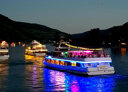Apropos genießen: Kurz nach dem Ablegen erwartet Sie ein feines 2-Gänge-Menü. Während des köstlichen Schmauses fahren Sie von Bonn Richtung Königswinter, wo sich Ihr Schiff einem eindrucksvollen Konvoi anschließt. Gemeinsam gleiten die Schiffe entlang des wundervoll illuminierten Rheinufers, vorbei an festlich angestrahlten Burgen und Schlössern, idyllischen Weinbergen des Siebengebirges, fantastischen Licht- und Laserinstallationen. Stimmungsvolle Live-Musik sorgt für eine perfekte Unterhaltung an Bord, außerdem sind alle Getränke während der gesamten Fahrt inklusive.