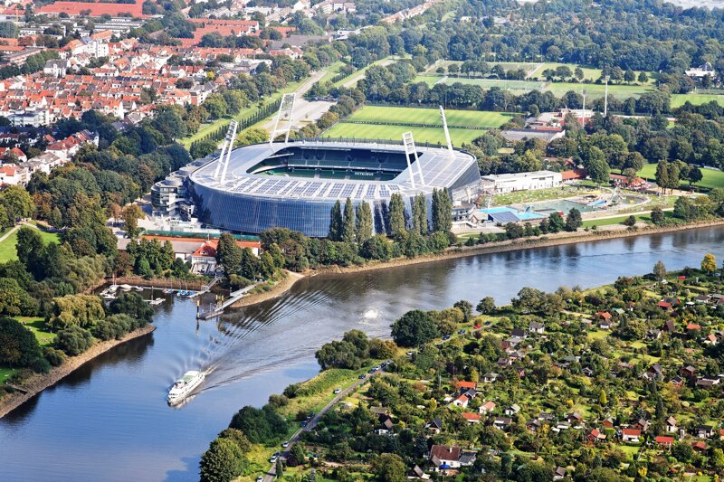 Besonderheit: Das Weserstadion ist als pure Fußball-Arena konzipiert. Die Zuschauer rücken dadurch so nah ans Spielfeld heran wie nie zuvor. Eine der wesentlichen und imposantesten Neuerungen seit dem letzten Umbau 2011: eine riesige Photovoltaikanlage, die in Fassade und Dach integriert ist. Fast 200.000 Solarzellen, die zusammengerechnet eine Fläche von etwa zwei Fußballfeldern bedecken, können bis zu 840.000 Kilowattstunden Strom pro Jahr produzieren. Somit ist es die größte, in einem Gebäude integrierte Photovoltaikanlage Europas.