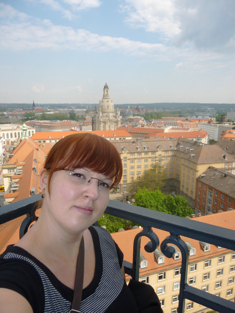 Maria Hollwitz arbeitete bis 2016 bei Spar mit! Reisen. Von der Aussichtsplattform der Kreuzkirche hat sie einen fantastischen Blick auf die nur wenige Meter entfernte Frauenkirche.
