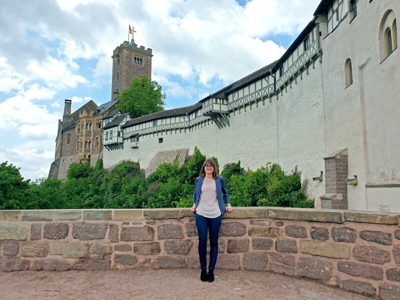 Melanie Schmitt, hier vor der Wartburg in Eisenach, arbeitet seit 2012 bei Spar mit! Reisen. Sie produziert unter anderem Reisepakete in Thüringen.