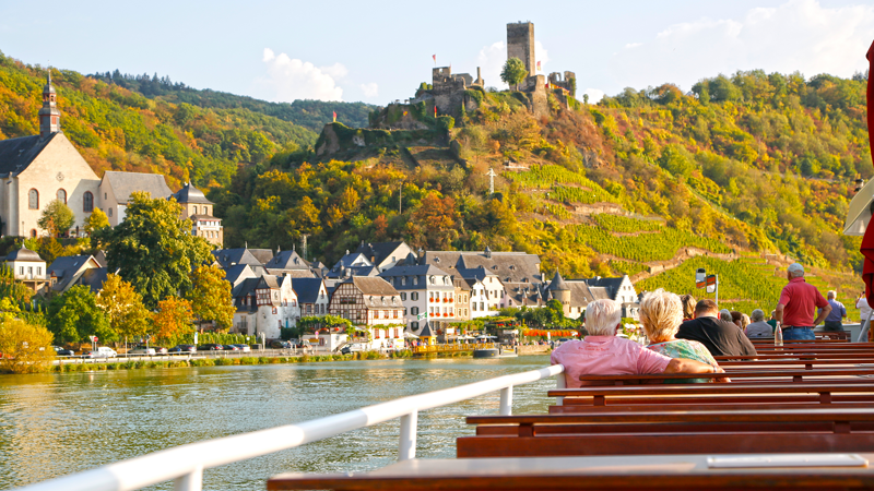 Mosel-Schifffahrt von Ernst nach Beilstein und zurück (90 min, von Mai bis Ende Oktober täglich, im April und November samstags und sonntags)