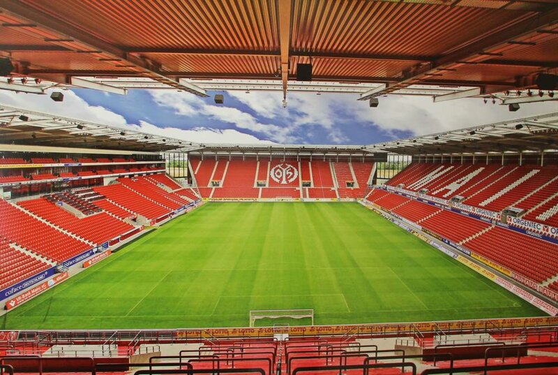 Besonderheit: Rot, markant, unverwechselbar - die Mewa Arena vereint den Geist traditioneller Stadien mit der Funktionalität moderner Arenen. Nach außen prägen die großen roten Torbogen, welche jede der vier Tribünen einrahmen, das Bild des modernen Stadions. Sie geben der Mewa Arena nicht nur einen besonderen Anstrich, sie demonstrieren auch weithin sichtbar, wer hier seine Heimat gefunden hat: die Rot-Weißen vom 1. FSV Mainz 05.