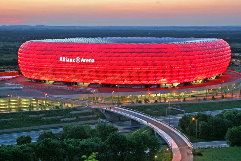 Besonderheit: Architektonisch ist die Allianz Arena ein wahres Meisterstück. Seit ihrer Eröffnung ist sie das Wahrzeichen von München, auch weil sie unübersehbar direkt an der Autobahn thront. Die Stimmung ist hier wesentlich besser als im Olympiastadion, wo der FC Bayern vorher spielte - eine moderne Fußball-Arena statt 70er-Jahre-Flair. Und vor allem abends lohnt sich der Besuch, wenn sich das Dach des "Fußball-Ufos" imposant verfärbt.
