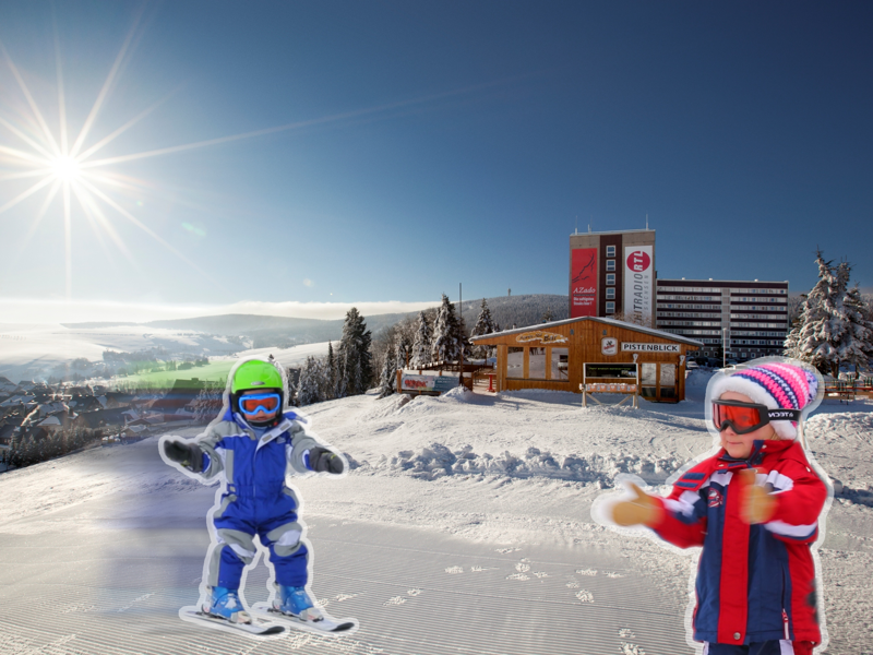 Ihre Unterkunft ist das Ahorn Hotel am Fichtelberg, eins der berühmten früheren FDGB-Ferienheime in der DDR. Die hatten meist drei Dinge gemeinsam: Plattenbau, riesengroß und allerbeste Lage. Die Berliner Ahorn-Hotelgruppe hat nach der Wende fünf von ihnen übernommen und mit langem Atem renoviert. Bis heute kommen jedes Jahr neue Attraktionen für die Gäste hinzu. Vom spröden DDR-Charme ist nur die Hülle geblieben. Das 388-Zimmer-Haus am Fichtelberg ist ein wunderbares Beispiel dieser Verwandlung.