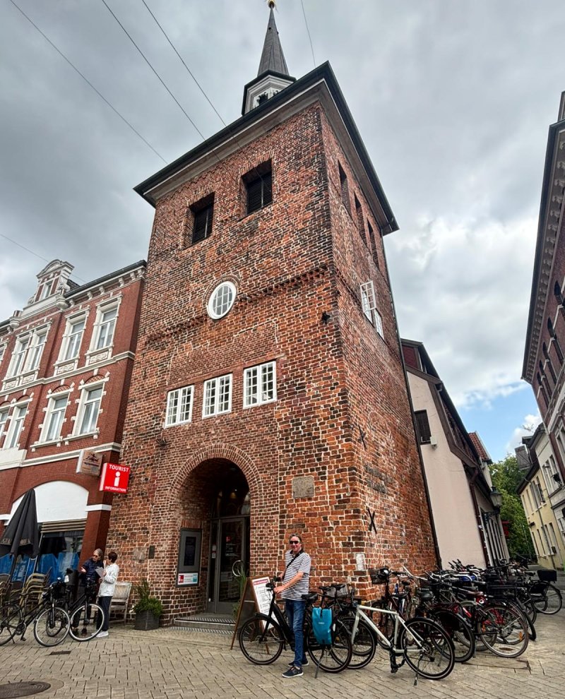 Aber was bitte ist der „Lappan“? Haben wir gegoogelt: ein mittelalterlicher Wachturm mit Glockenspiel, das älteste Gebäude und Wahrzeichen der Stadt. Im 14. Jahrhundert wurde er an eine Kirche angebaut (= angelappt). Die Kirche gibt's nicht mehr, den Turm sehr wohl.