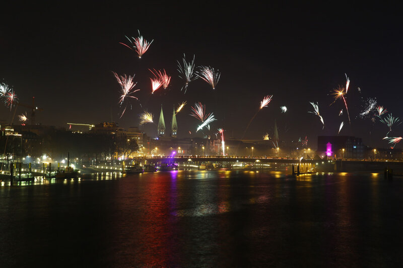 So geht's perfekt eingestimmt auf den Jahreswechsel zu. Punkt Mitternacht ist es dann soweit: Sie erleben das prächtige und spektakuläre Feuerwerk vor der fantastischen Kulisse der stimmungsvoll erleuchteten Hansestadt aus allererster Reihe, mitten im Fluss. Dazu servieren wir natürlich prickelnden Sekt, damit Sie stilecht aufs neue Jahr anstoßen können.