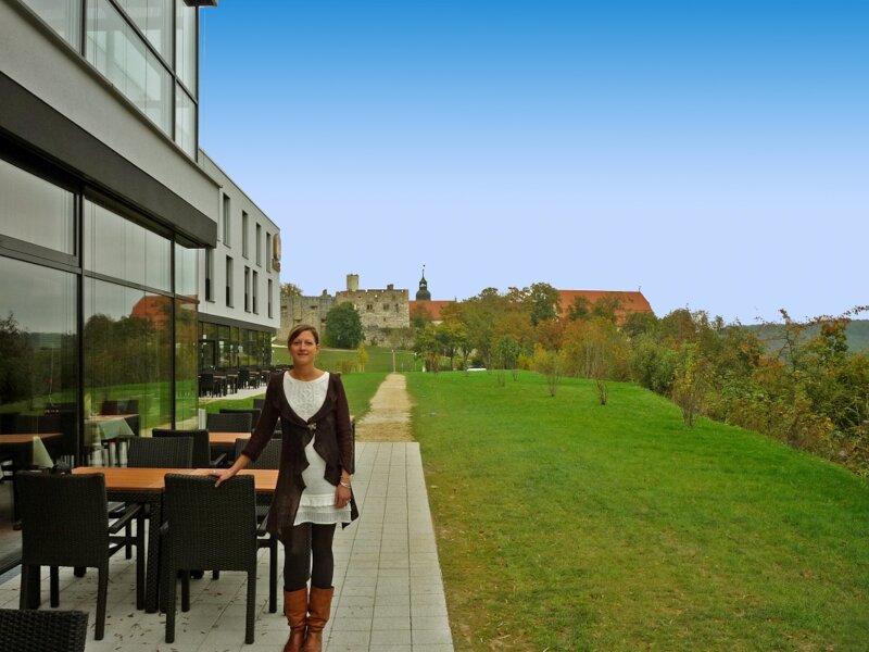 Modernes und elegantes Stadthotel in bester Lage gegenüber vom Schloss Hellenstein, 4 Sterne superior, individuelle Ausstattung und außergewöhnliches Architektur-Konzept, 2009 gebaut und seitdem stetig renoviert.