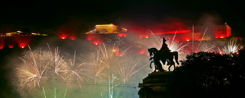 Silvester in Koblenz – das ist gleich mehrfach schön. Denn wo sonst hat man die Möglichkeit, an zwei der beliebtesten deutschen Flüsse ins neue Jahr zu feiern? Und dann noch in einer der ältesten und sehenswertesten Städte Deutschlands überhaupt: das Deutsche Eck mit dem riesigen Kaiser-Wilhelm-Denkmal, das Kurfürstliche Schloss, die Festung Ehrenbreitstein, die Alte Burg am Moselufer, Schloss Stolzenfels, Liebfrauenkirche, Jesuitenplatz, Weindorf und, und, und. Spektakulärer kann ein Jahreswechsel kaum sein!