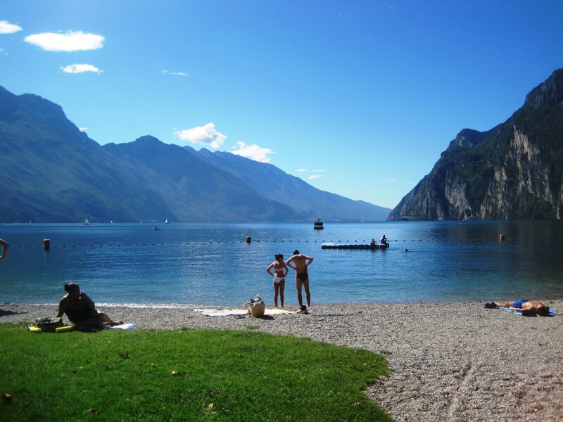 In Riva del Garda sollten Sie in Ruhe durch die Gassen der Altstadt schlendern, in einer netten Bar einen Cappuccino trinken und unbedingt mal mit dem Boot über den See schippern. Sie können den Lago natürlich auch mit Ihrem Auto umrunden, was vor allem in schönen Oldtimern sehr viel Spaß macht. Mit der Fähre ist es aber auch ganz nett. Mein Tipp: Fahren Sie mal von Riva nach Sirmione oder nach Desenzano del Garda, zwei sehr schöne Städtchen am Gardasee. Außerdem können Sie auf diese Weise fast den ganzen See erkunden, da die beiden Orte im Süden liegen. Die Fahrt nach Sirmione dauert zum Beispiel nur knapp zweieinhalb Stunden. Und genießen Sie den schönen Strand von Riva del Garda. Diesen Tipp gab mir Sales Manager Lorenzo Casagrande. Nirgendwo sonst am Gardasee haben Sie einen so großen Standabschnitt mit Liegewiese, Palmen und herrlichen Ausblicken. Und das Beste: Der Strand ist nur 10 Minuten Fußweg von Ihrem Hotel entfernt.