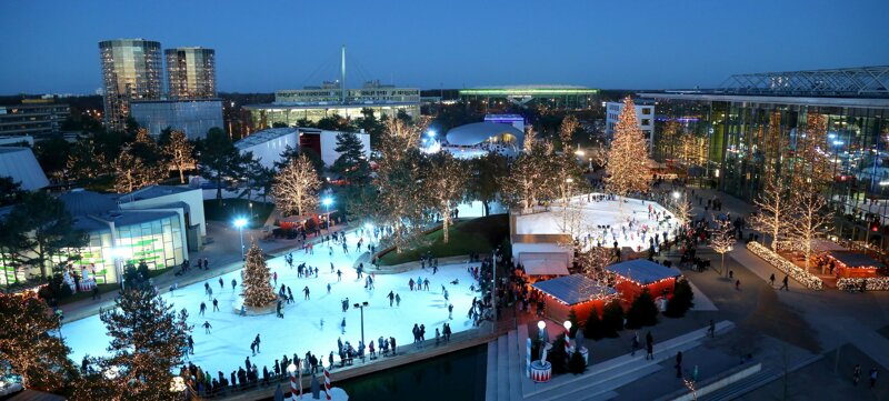 Herzstück des Autostadt-Winterzaubers ist aber die riesige Eisfläche. Hier kann sich die ganze Familie auf rund 4.000 Quadratmetern Eis nach Herzenslust austoben und in der stimmungsvollen Weihnachtsatmosphäre vergnügt ein paar Runden auf den Schlittschuhen drehen. Ab 2025 gibt's außerdem zwei neue Curlingbahnen zum spaßigen Eisstockschießen. Sonntags bis donnerstags wird ab 16.30 Uhr die Eis- zur Partyfläche und aus der Schlittschuhbahn eine spektakuläre Eisdisco mit Musik vom DJ. Jeder Tag steht dabei unter einem anderen Motto, die Fläche wird passend dazu dekoriert. Zum Aufwärmen zwischendurch oder um den Abend mit einer heißen Feuerzangenbowle und Après-Ski-Hits zünftig ausklingen zu lassen, ist der „Hüttenzauber" der perfekte Ort. Oder Sie besuchen das Museum „ZeitHaus", wo Sie über 260 Fahrzeuge aus 130 Jahren Automobilgeschichte bestaunen können ...