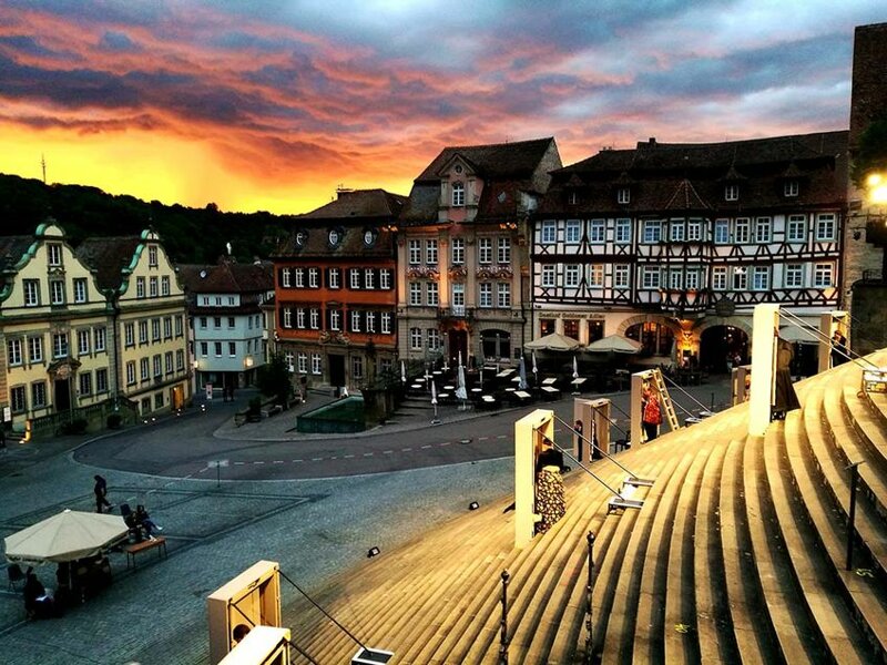 Das Schmuckstück ist der Marktplatz. Mit seinen unterschiedlichen Baustilen, von Romanik bis Rokoko, zählt er zu den Top 10-Plätzen Baden-Württembergs. Neben dem barocken Rathaus und all den malerischen Fachwerk-, Bürger- und Adelshäusern sticht ein Kirchenkoloss hervor: St. Michael. Seine riesige Freitreppe mit 53 Stufen wird seit 1925 jeden Sommer als Freilichtbühne genutzt. Von Schiller bis Shakespeare – eine steile, spektakuläre Sache!