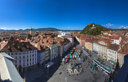 Die berühmte Graz-Kulisse, sie kommt nichtsdestotrotz durch die Pracht der mittelalterlichen Altstadt. Sie ist nahezu vollständig erhalten und UNESCO-Weltkulturerbe. Entdecken Sie bildschöne Renaissancegebäude, detailreiche Barockfassaden, Gebäude-Schätze wie das „Gemalte Haus“ mit griechischen und römischen Göttern und den ganzen Stolz der Stadt: den Grazer Uhrturm. Das 28 Meter hohe Wahrzeichen thront auf dem Schlossberg. Hoch geht's auf drei Arten. Für fitte Besucher führen rund 260 Stufen hinauf. Oder Sie nehmen die Grazer Schlossbergbahn, eine bereits 1894 gebaute Standseilbahn. Dank 60-prozentiger Steigung und gläsernem Dach bietet sich während der Fahrt ein faszinierender Ausblick auf die Altstadt. Variante 3: In nur 30 Sekunden bringt Sie der Schlosslift hinauf, der durch das Innere des Berges verläuft. Egal, ob per pedes oder gefahren – hier oben genießen alle Besucher einen grandiosen Blick auf Graz und die Umgebung.