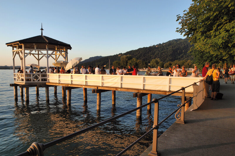 Bregenz lässt sich gut zu Fuß erkunden – die Innenstadt, die Altstadt und der Seebereich liegen nah beieinander. Ein Besuch des Seebereichs rund um die Seebühne gehört immer dazu, auch wenn keine Festspiele stattfinden.