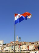 Über dem klaren Wasser und dem gepflegten, sauberen Strand in Rabac an der Adria weht die "Blue Flag", ein internationales Gütesiegel für Wasser- und Strandqualität.